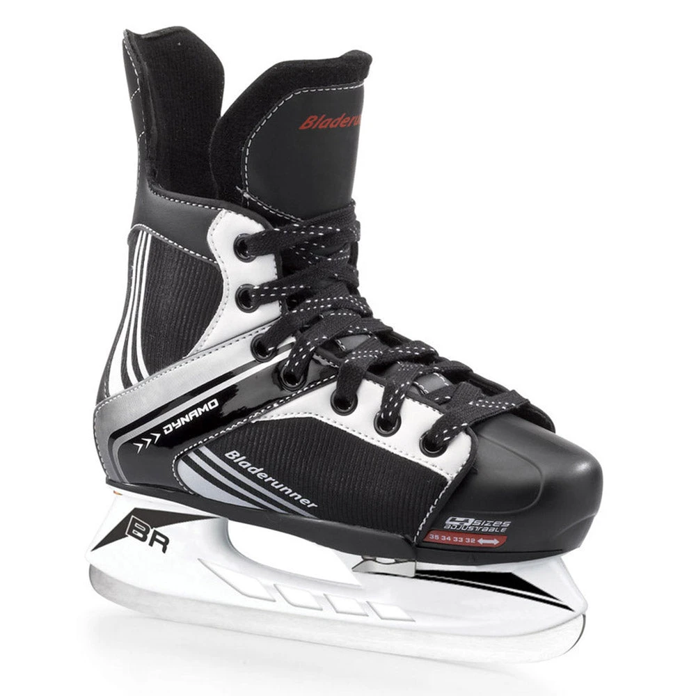 Perfect for beginning skaters and less for competitive hockey players comes the Bladerunner Dynamo Hockey Skates. These skates come with four sizes of adjustability so they last for multiple seasons and they provide a comfortable and supportive fit for skaters that want a skate to grow with their feet. The Dynamo is great for kids that want a hockey style skate that provides comfort, protection and support when skating and passing the puck around. The lace closure provides a secure fit and the carbon steel blades maintain a good edge and deliver a consistent performance.