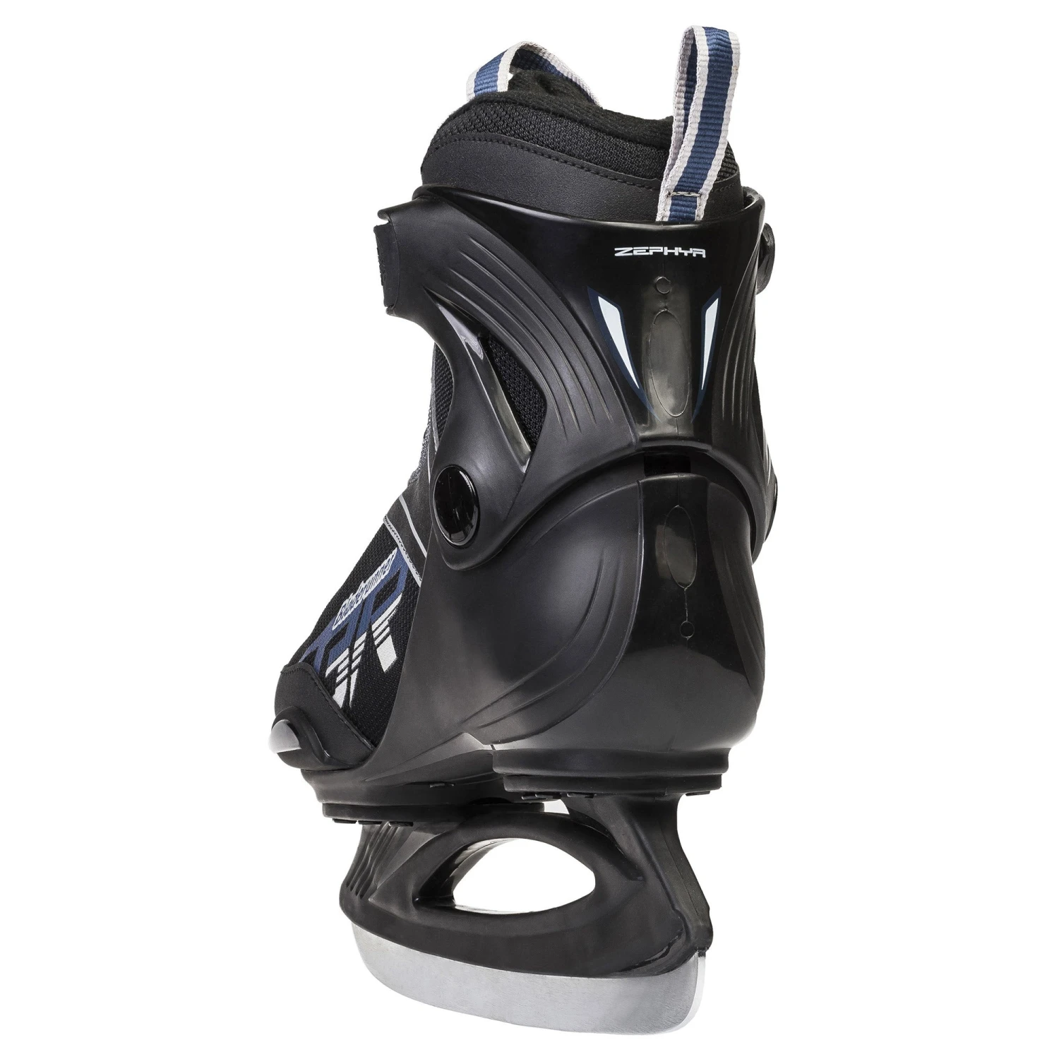 Designed for Mens recreation without a traditional figure or hockey style comes the Bladerunner Zephyr Ice Skate. This skate features a padded footbed and velvet lining that will keep the feet cushioned and comfortable. The Zephyr provides enhanced lateral suport and forward-flex that will promote performance at all skill levels. The cuff buckle, Powerstrap and lace closure system allow skaters a secure and comfortable fit that allows for tons of time on the ice. The stainless steel figure blade will hold its edge longer and will prevent rusting to deliver consistent performance with minimal maintenance.