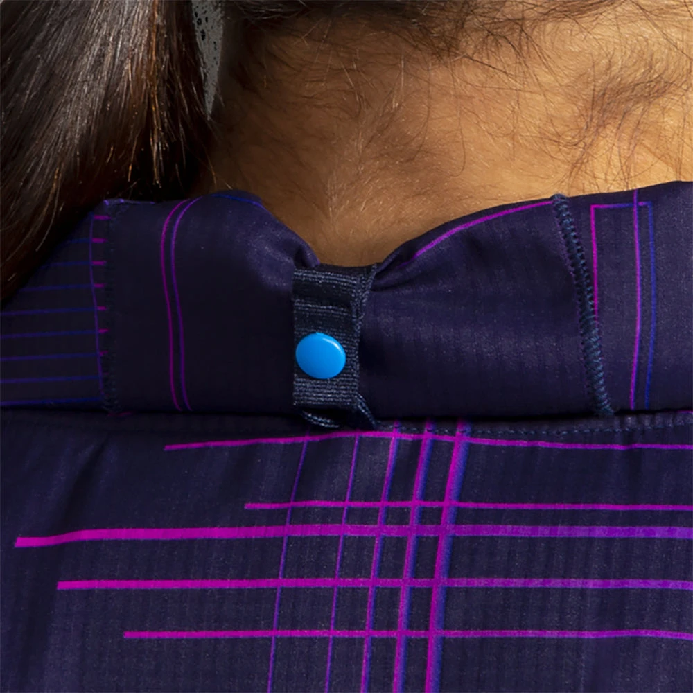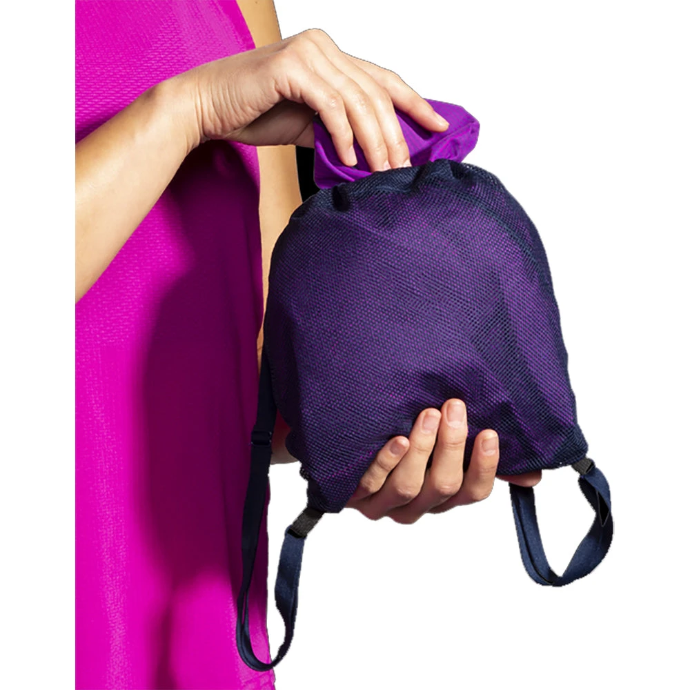 Get wind and water protection for your next run with the Brooks Canopy Running Jacket. This jacket provides improved breathability with a draft flap along the zipper so you can unzip for maximum airflow while still keeping the jacket in place and this jacket packs into a built-in mesh backpack so you can take it off and easily stow it and keep on running in warm weather. The breathable DriLayer Seal fabric will let excess heat out while keeping the elements out for a comfortable run.
