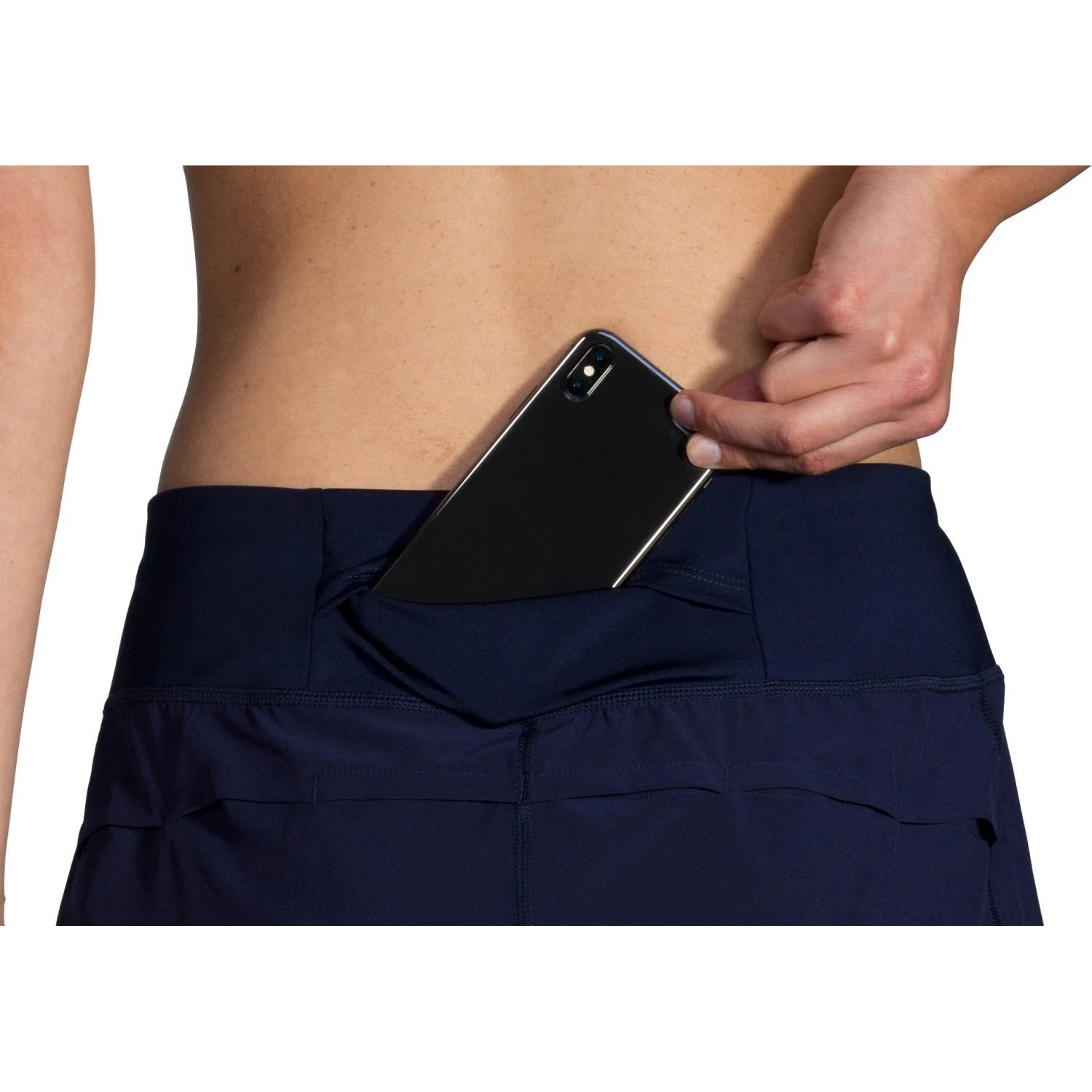 Perfect for running comes the Brooks Chaser Shorts. These shorts feature a five inch inseam that features a smooth, wider waistband with infinity drawstring for a secure and adjustable fit. The soft stretchy, jersey liner will not ride or bunch up and are built with a moisture wicking material and smooth cloud seaming for a dry and comfortable fit. There are two front pockets and a back pocket that is large enough for a phone and a bungee loop for your keys.