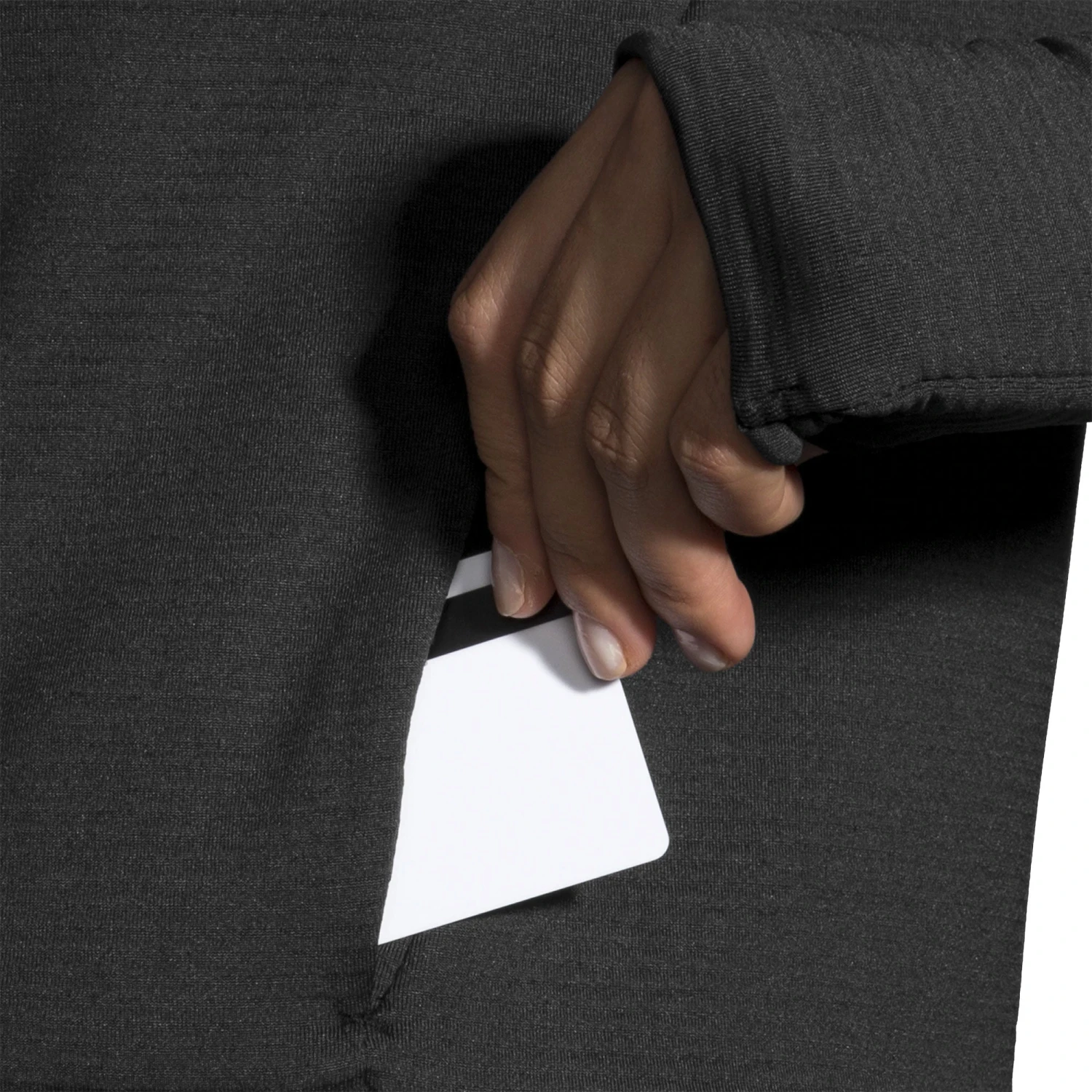 Enjoy serious warmth without the added bulk on chilly runs with the Brooks Notch Womens Long Sleeve Running Shirt. The updated fit provides more structure, while breathable, sweat-wicking thermal fabric keeps you warm and toasty during your run. The top stays fresh in between washes thanks to the odor resistant, – finish. It features thumbholes for a stay-put fit and two hand pockets that are great for storing your credit card, phone, or head phones.