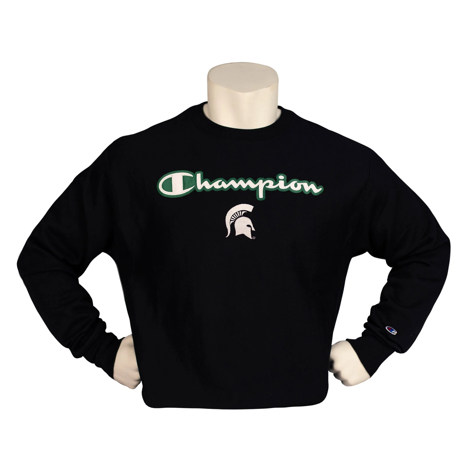 Arrive in style in your Michigan State University Champion Men’s Crewneck Sweatshirt. Features an embroidered Champion logo with Spartan on the front chest. Perfect for game day, or all the days in between. Go Green!