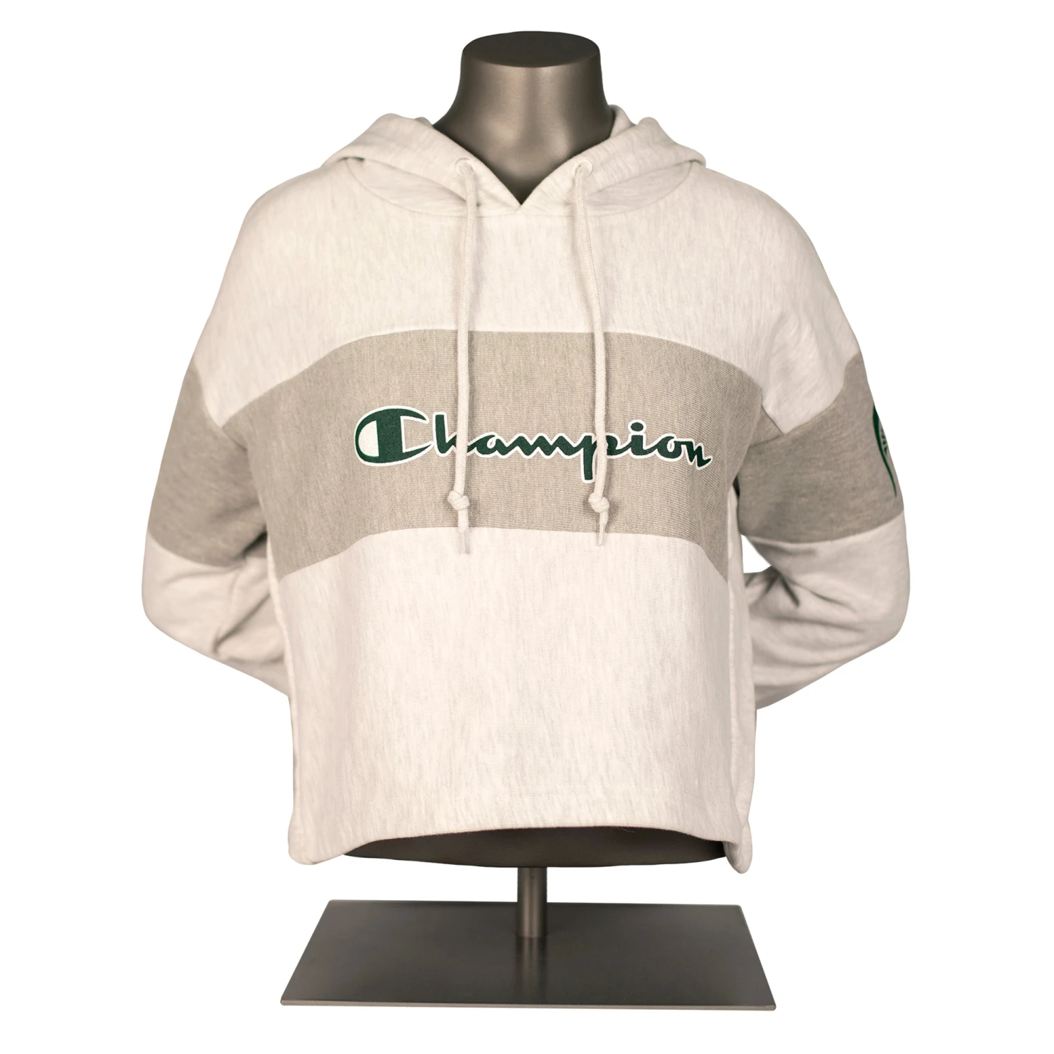 Show your Michigan State spirit in style with this Champion Women’s Cropped Hoodie. Features the Champion logo on front and Spartan logo on the upper left sleeve. Perfect for game day, or all the days in between. Go Green!
