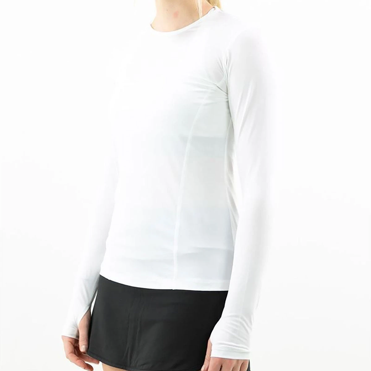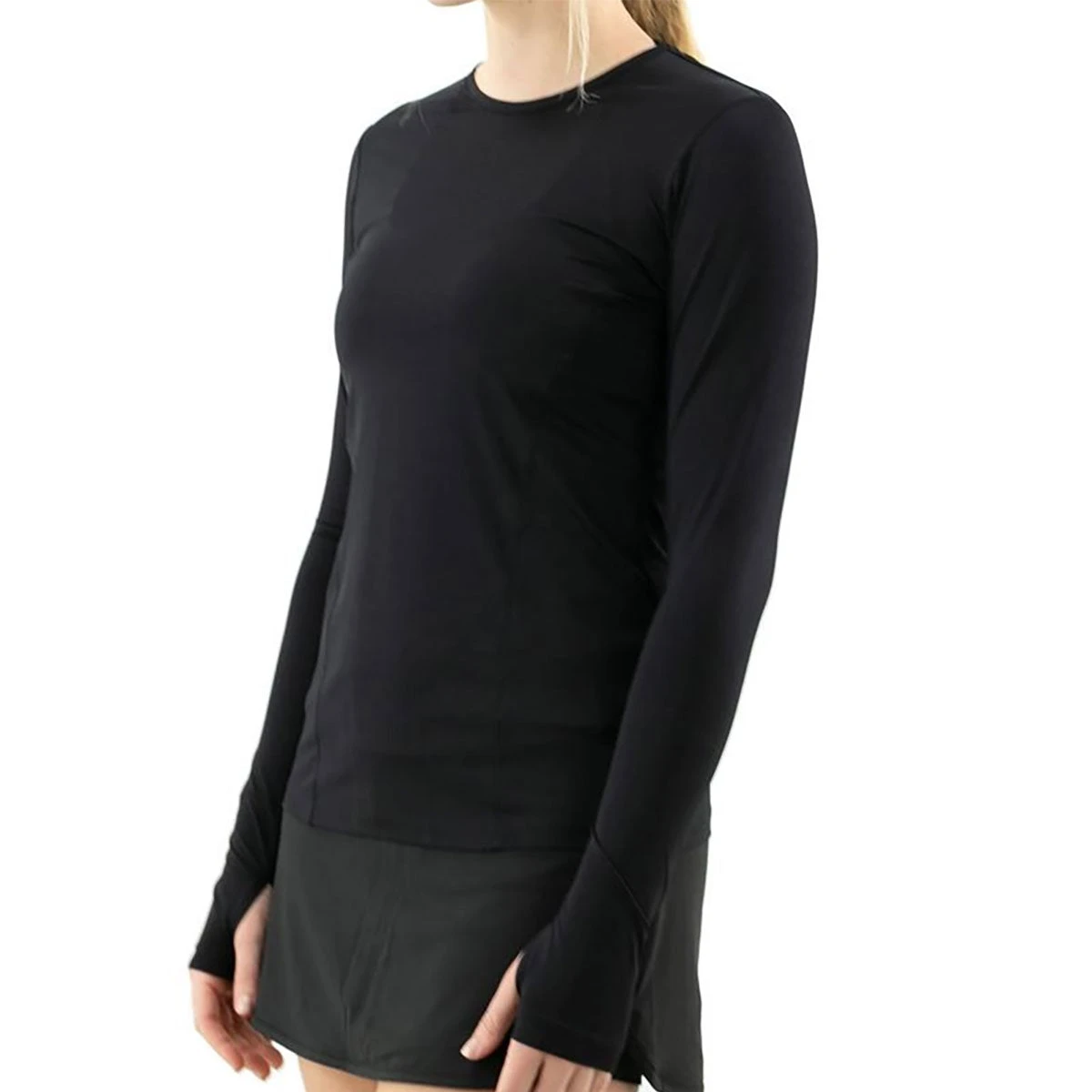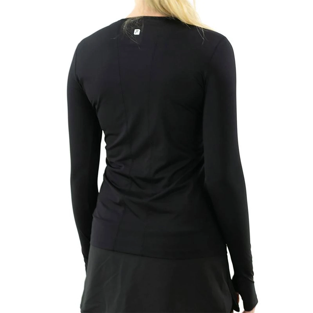The FILA UV Blocker Womens Long Sleeve Tennis Shirt is essential out on the court. Crafted from a Nylon and Spandex blend, this performance fabric has a 50+ UV rating to block out the harmful rays of the sun. The semi-fitted athletic fit creates a flattering silhouette. Pair the FILA UV Blocker Long Sleeve Top with your favorite tennis skirt!