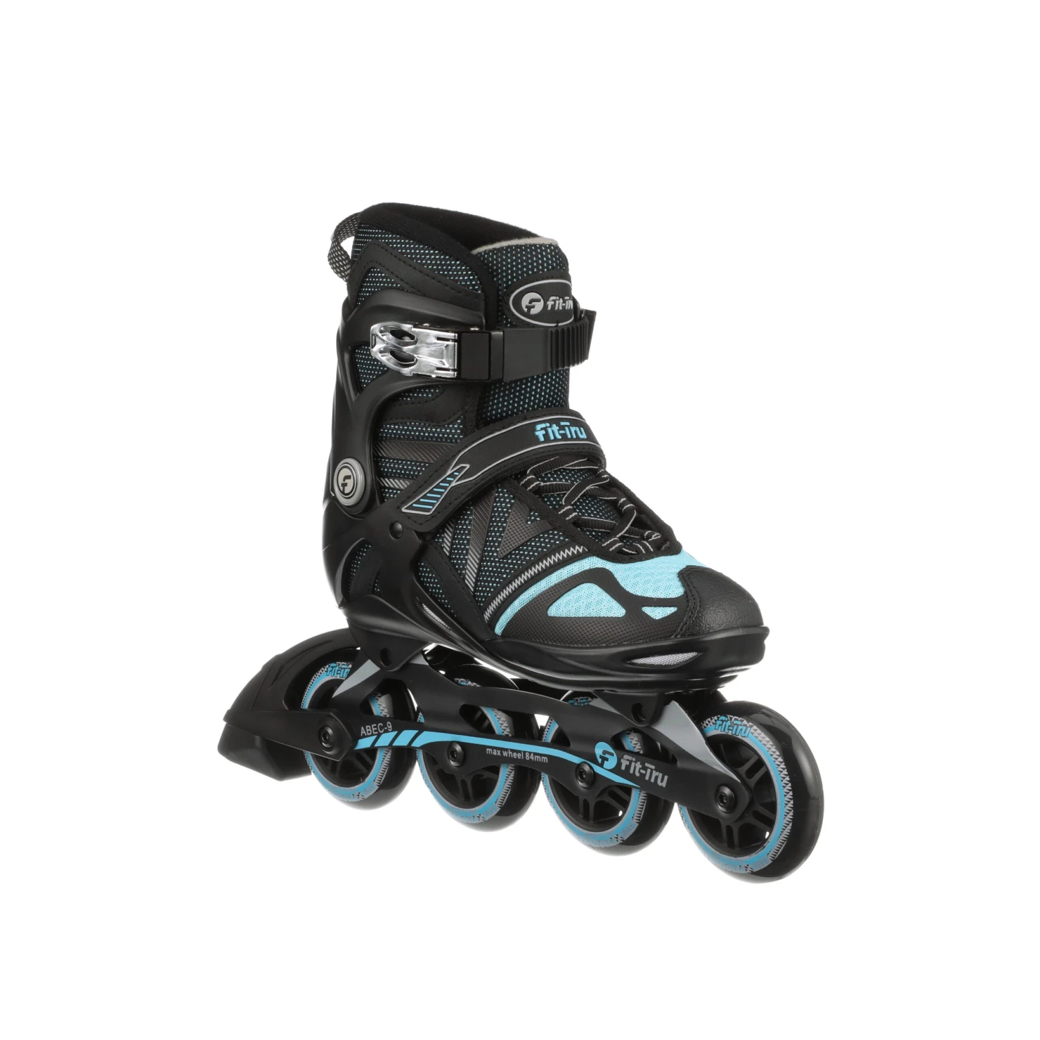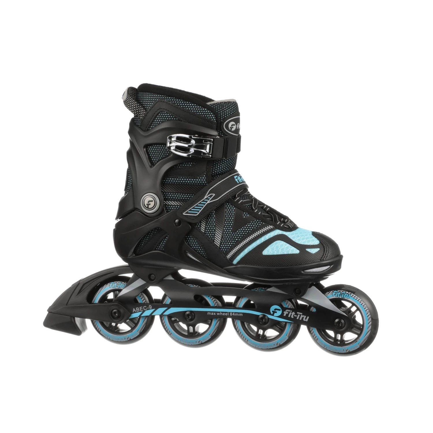 Perfect for fitness enthusiasts and beginner skaters that are looking for speed comes the Fit-Tru Cruze 84 Inline Skate. These skates feature a fully padded liner that provides tons of comfort and lateral support to keep the skates fitting comfortably on your feet. There is a highly breathable lining material that pulls sweat from your feet to keep them feeling cool and dry. An aluminum frame gives skaters improved performance and 84mm wheels with ABEC 9 bearings will provide tons of speed and a highly smooth roll. A cuff buckle, hook and loop and lace closure lets you get a secure and comfortable fit that will provide a highly enjoyable skating experience. These skates are built for comfort and may not fit as snug as other skates.