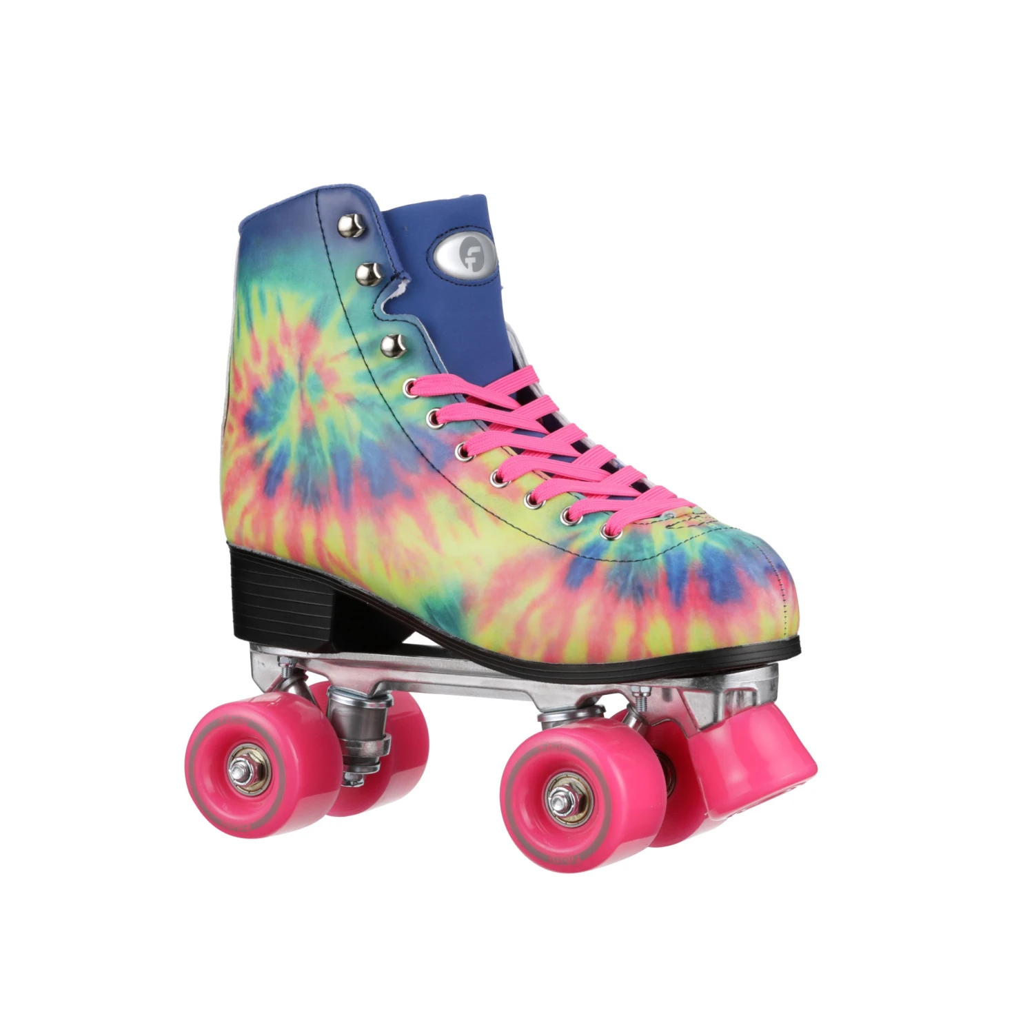 Skate around in comfort and style with the Fit-Tru Cruze Quad Roller Skates. These skates are built with a vegan leather boot and breathable lining that are designed to keep your feet cool, even on hot days as the fabric wicks away moisture to keep your feet dry and fresher for longer. The Cruze quads come with anatomically correct insoles that provide proper arch support so your feet will feel great, even after a 20 minute skate. The 58x32mm wheel size combined with ABEC 7 bearings, provides you with the perfect amount of speed for your recreational skate. You can’t beat a tie-dye vegan leather boot as skating in style is a must!