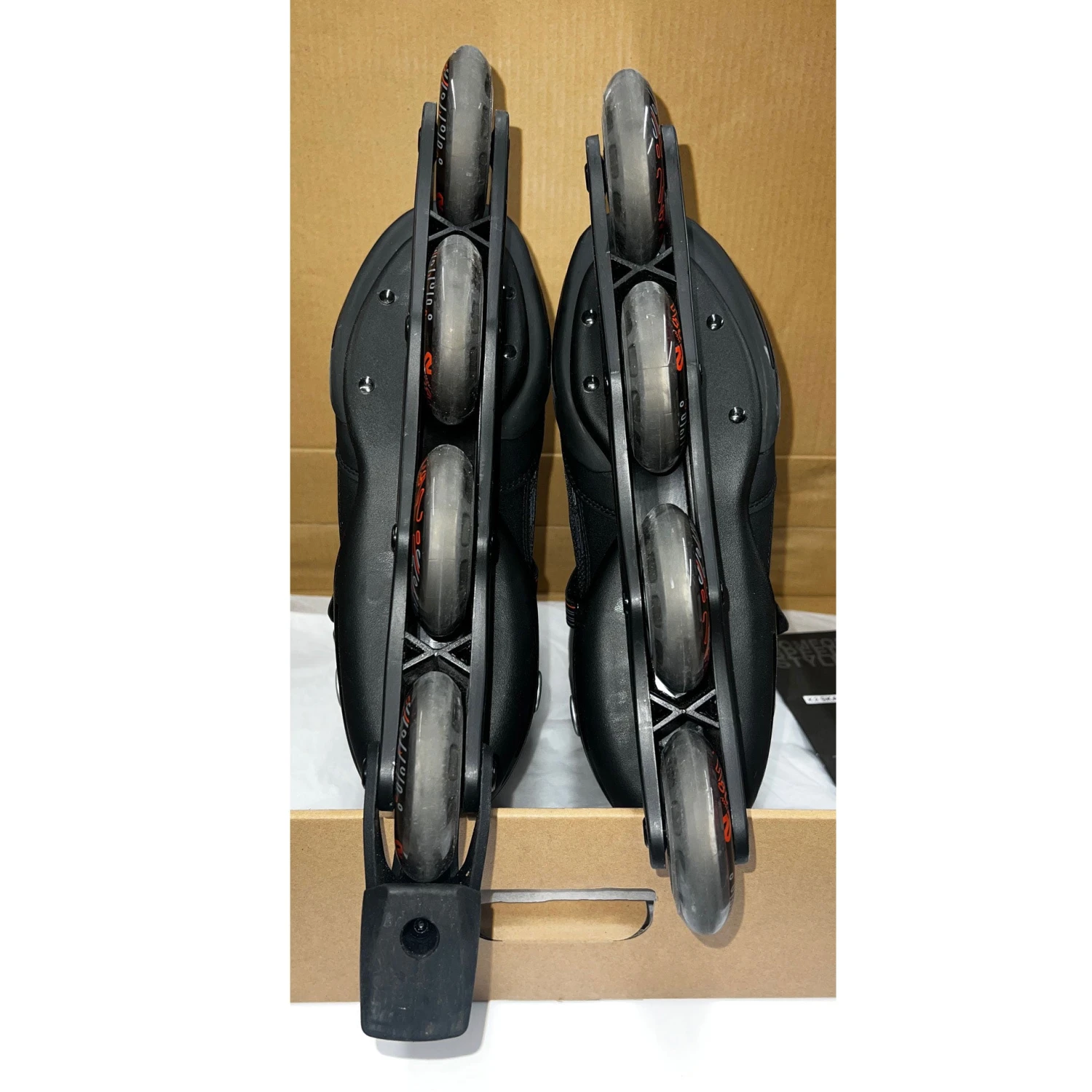 - These skates were simply tried on 1-3 times each. Wheels and boots will all have some wear and scuffs.