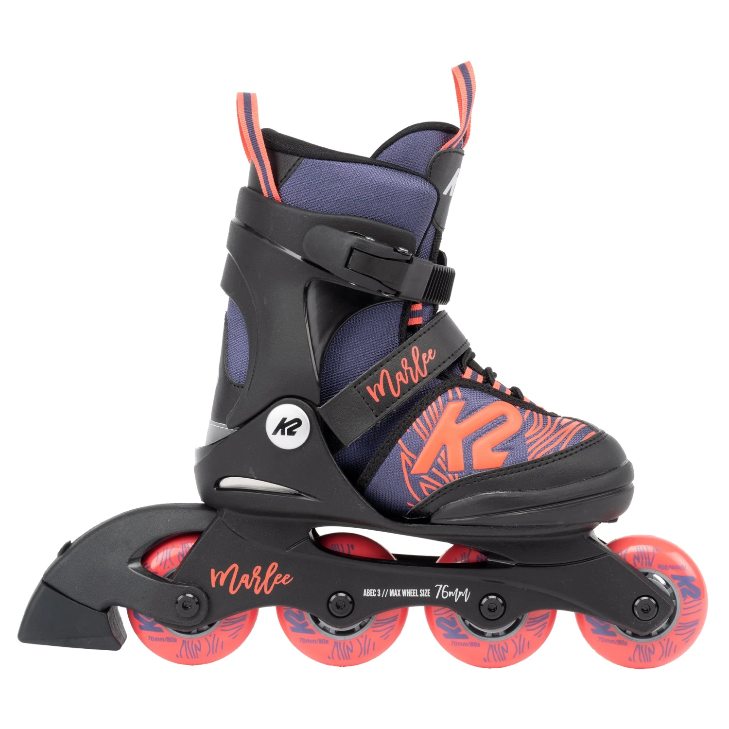 Great as a first pair of skates for your little one is the K2 Marlee Adjustable Inline Skates. The Marlee features traditional lacing and a Junior cuff that provide a secure fit with plenty of support to give them a comfortable skating experience. The F.B.I. frame helps absorbs vibrations and with 70mm wheels with ABEC 3 bearings provide skaters a secure, comfortable roll at all times. The five sizes of adjustability allow this skate to grow with your childs foot so they will last for multiple seasons.