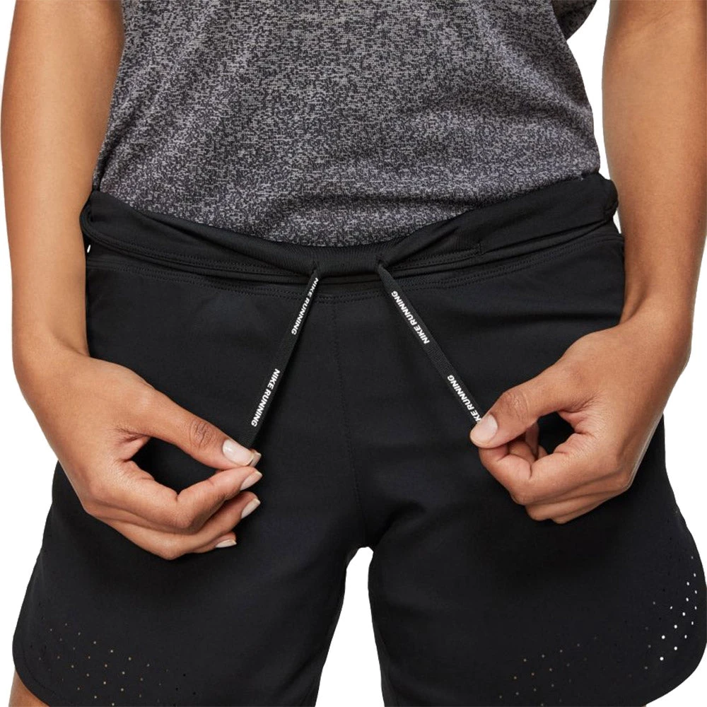These Nike Eclipse Womens 5 inch Running Shorts are set up for distance. The Nike Eclipse Shorts provide moisture-wicking breathability for the long haul. Splits along the side seams let you move freely, while the unique pocketing system helps keep your essentials close at hand. Designed with Nike Dri-FIT technology helping you stay dry, comfortable and focused. The Nike Flex fabric stretches with your body so you can feel the comfort to move the way you want. With perforated front panels enhancing ventilation, you will stay cooler all day and zoned mesh on the inner brief providing breathable comfort. Featuring wide, knit elastic waistband with an internal drawcord and zippered back pocket securing your phone with a vapor barrier helping guard items from sweat.