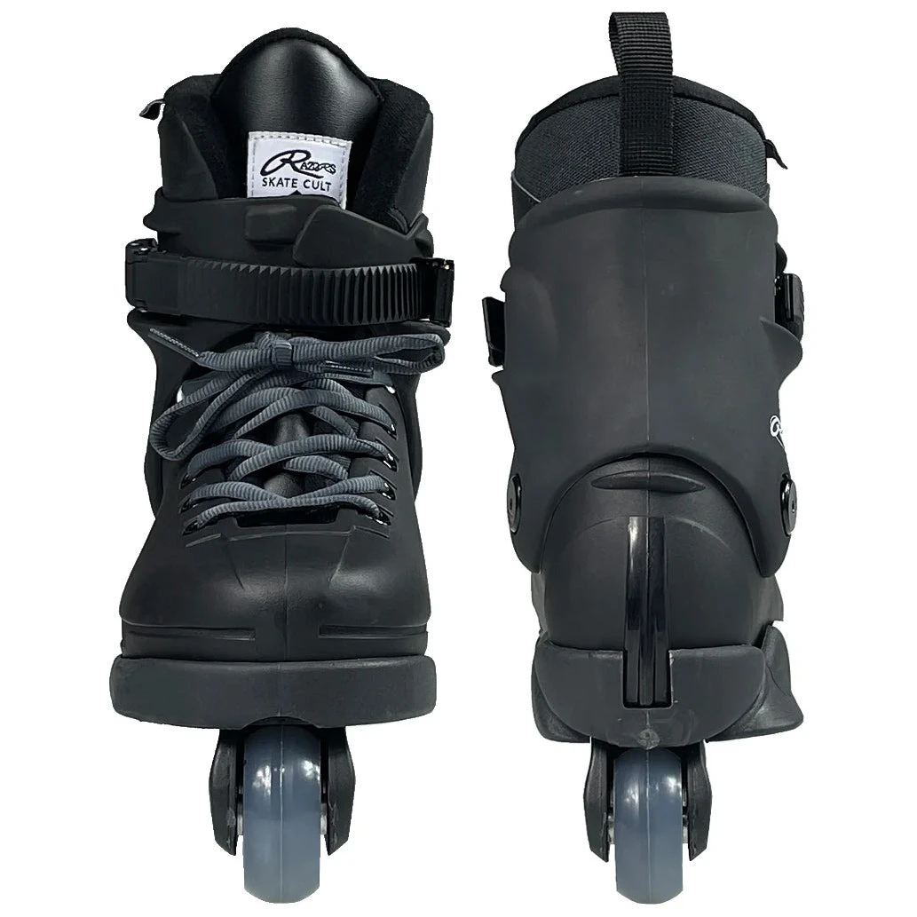 Built with a solid platform right out of the box comes the Razors Cult Black Aggressive Skates. The Cult Black features a lightweight, hard-shell boot with the Razors cuff and buckle closure that provides skaters a secure, comfortable fit. Each piece of this skate is fully replaceable and comes with two 57mm wheels and anti-rockers that provide moderate speed for you to skate into your next grind.
