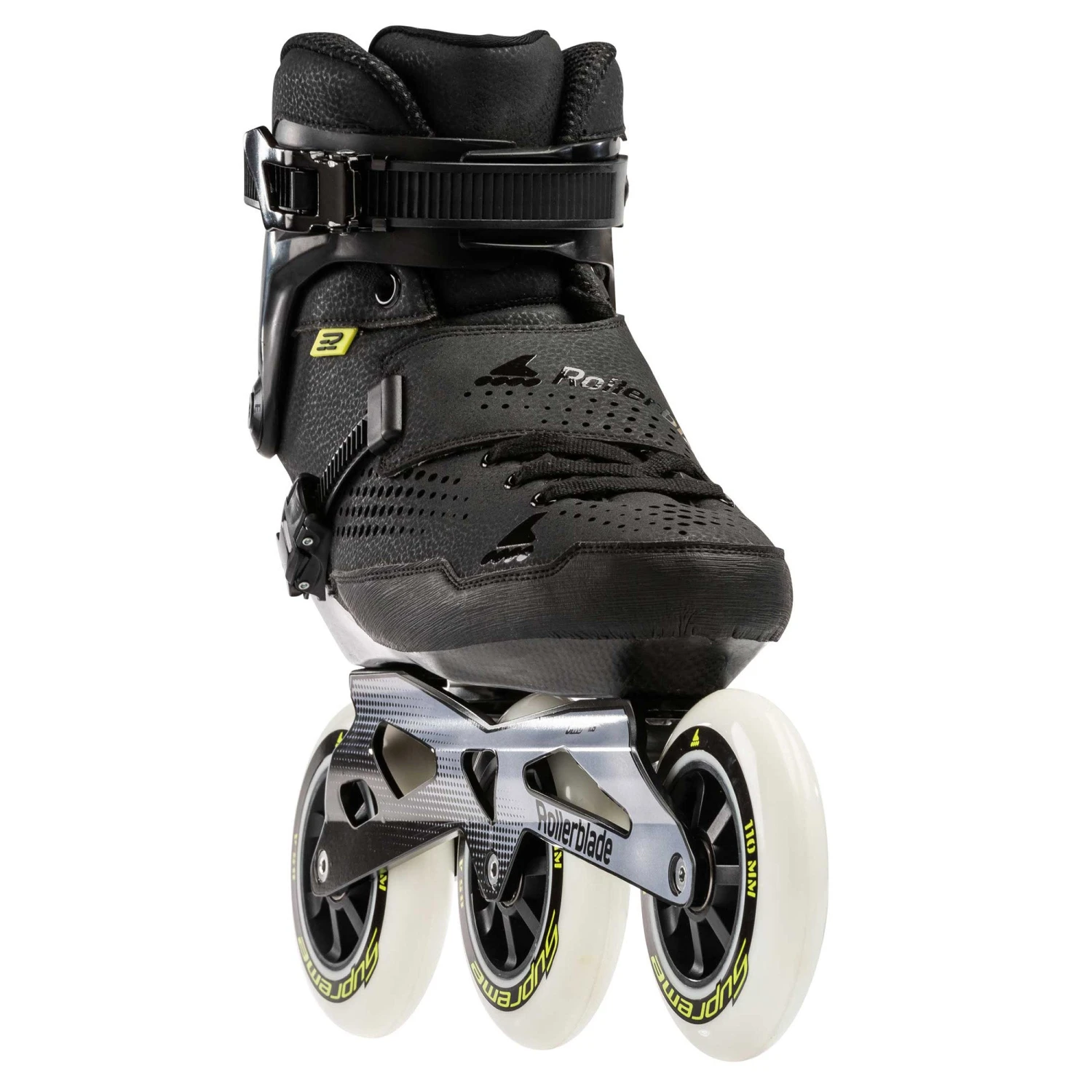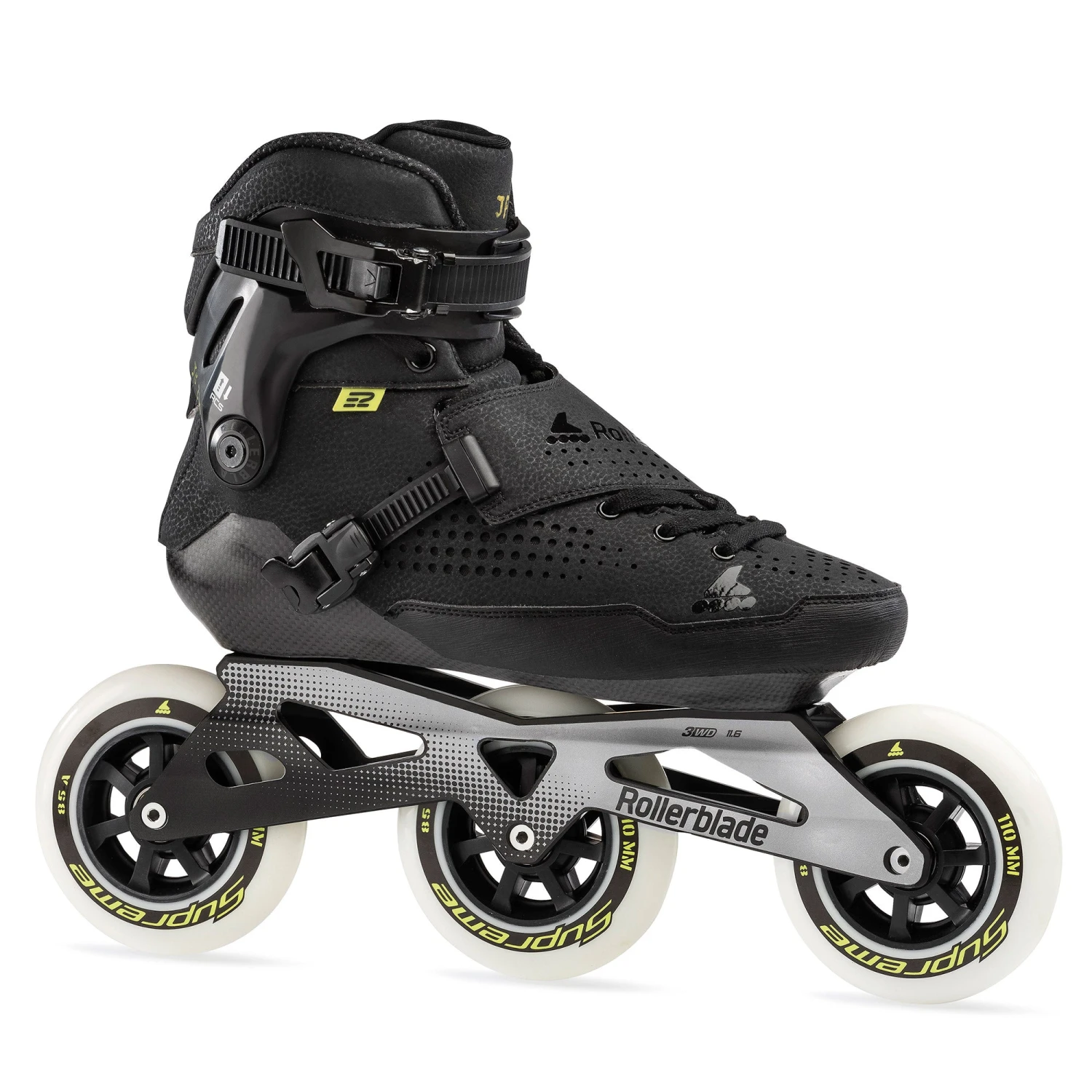 Get elevated performance and capture the true essence of a skate with the Rollerblade E2 110 Inline Skates. This skate is perfect for skating marathons, half-marathons and distance skating with tons of speed. There is a carbon fiber shell that will maximize efficiency and balance and the anatomical padding ensures that your feet are cradled in comfort and support and cushioning with every stride taken. The E2 skates feature a specific cuff profile, tongue construction and fit that creates the ultimate skating experience and the 110mm wheels with ILQ 7 Plus bearings will provide you with tons of speed with very little effort. The E2 110 has been designed for skaters to achieve their fitness and racing goals.