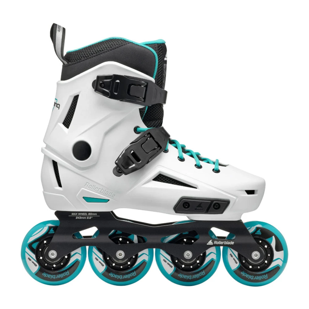 The Rollerblade Lightning Women’s Inline Skates are designed for versatility, making them ideal for urban cruising, fitness routines, or leisurely park laps. Featuring a molded, ventilated shell and a padded liner with a shock absorber, they ensure comfort and support during extended skating sessions. The memory buckle closure system, combined with lacing, offers a customizable and secure fit, while the Footboard Sizer allows for easy size adjustments. Equipped with 80mm/85A wheels, SG7 bearings, and a 243mm extruded aluminum frame, these skates provide a smooth and responsive ride for skaters of all levels.