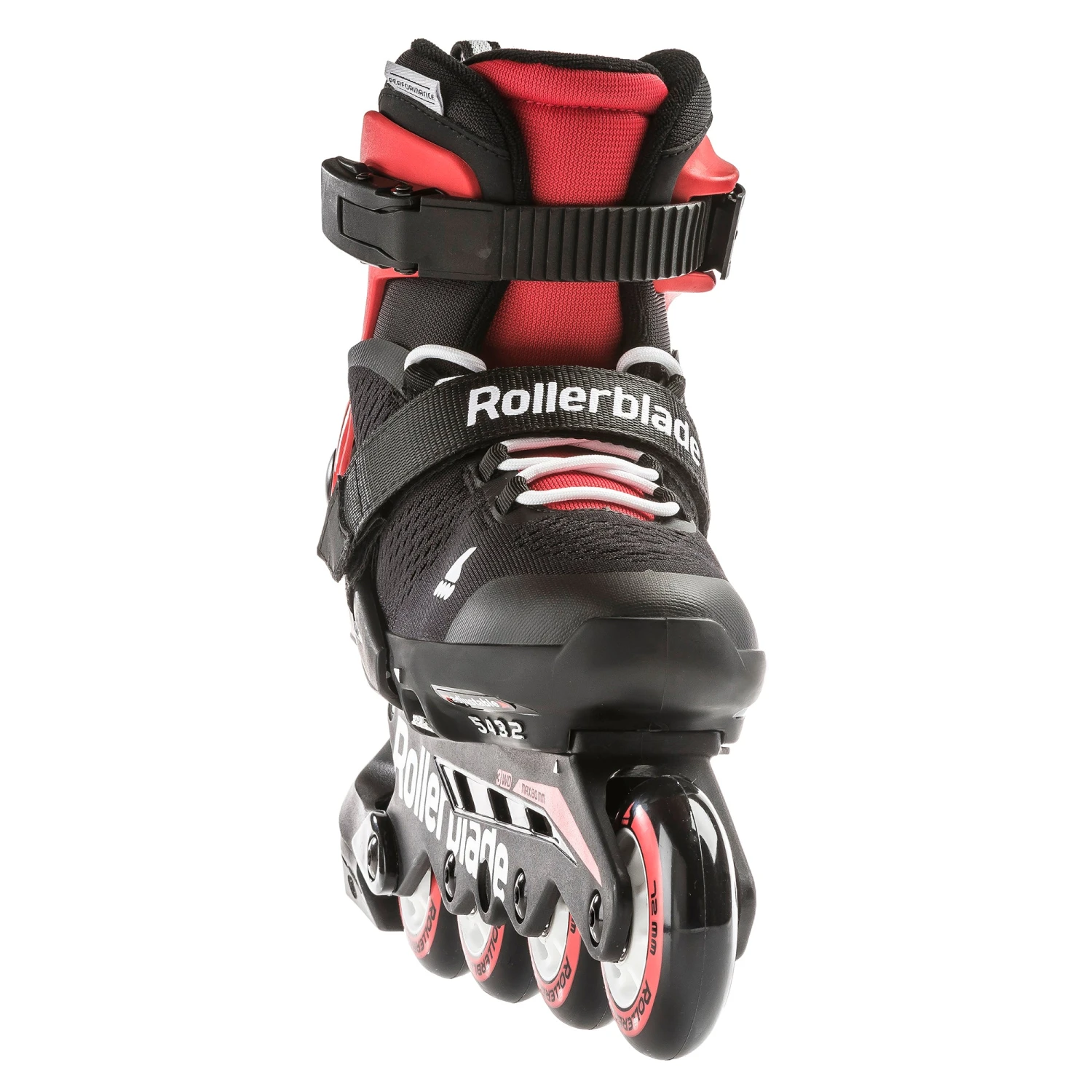 Get a high quality adjustable skate for kids with the Rollerblade Microblade Inline Skate. These skates are adjustable four full sizes via an easy to use system that works with just the push of a summary and markers in the toe area that align the skates to the correct size. The Junior Fit support liner features engineered mesh for breathability and enhanced comfort. These skates come with 72mm Rollerblade Performance wheels with SG3 bearings that provide a nice roll with moderate speed that will be great for your child to learn on.