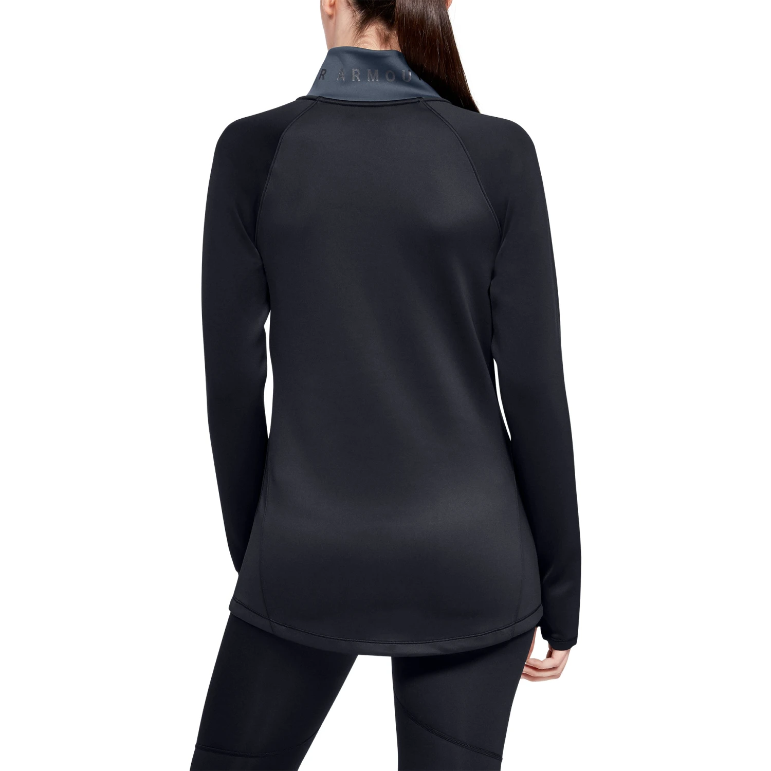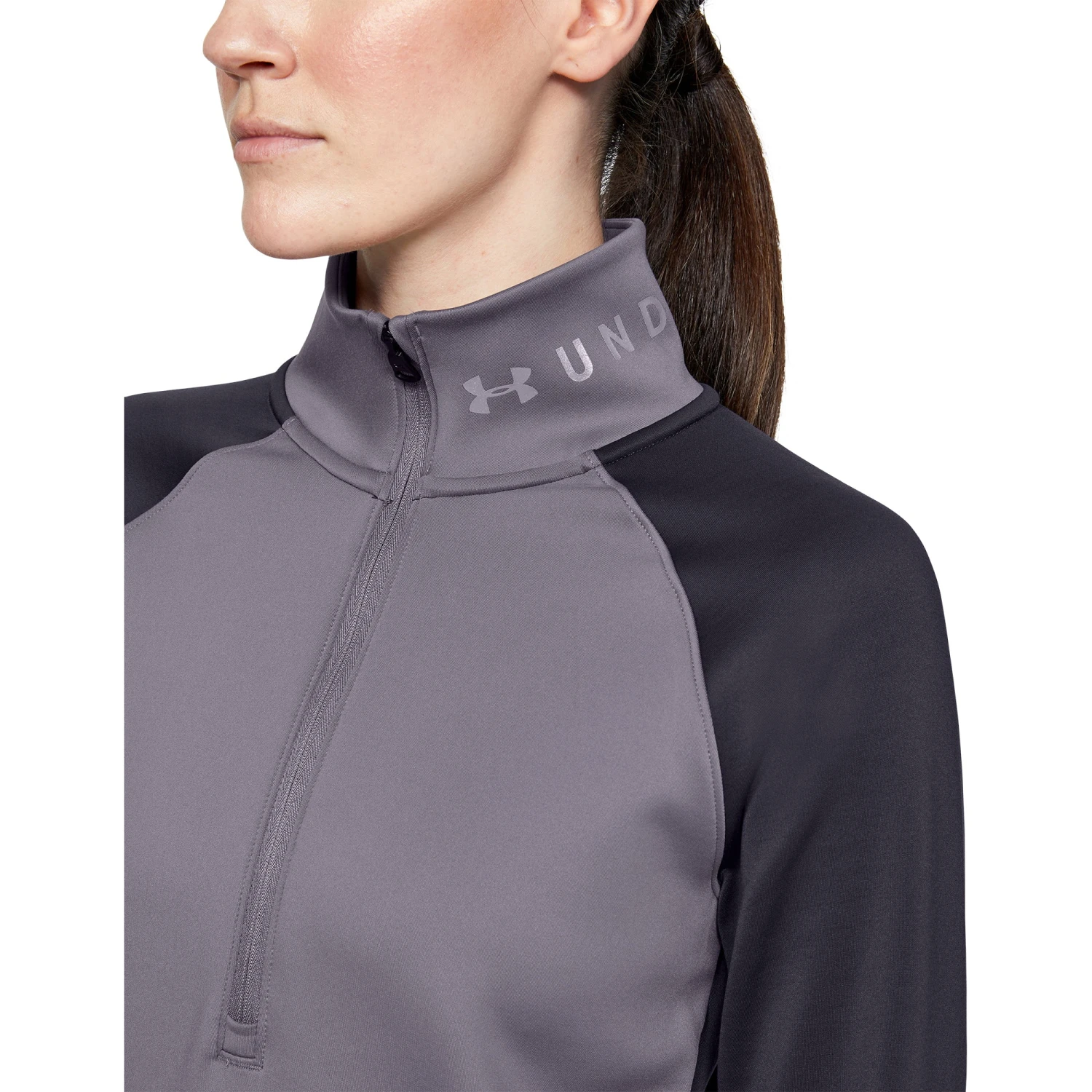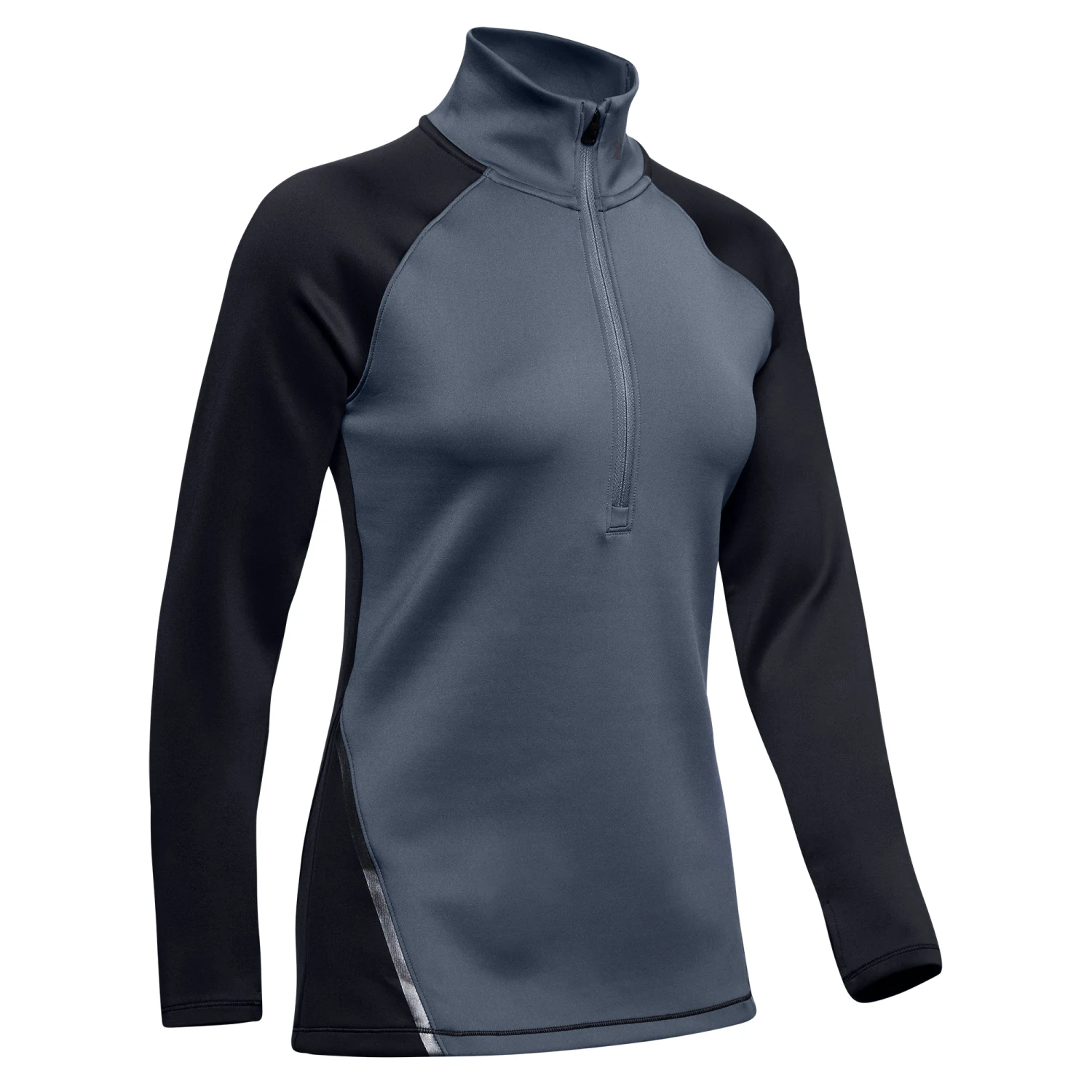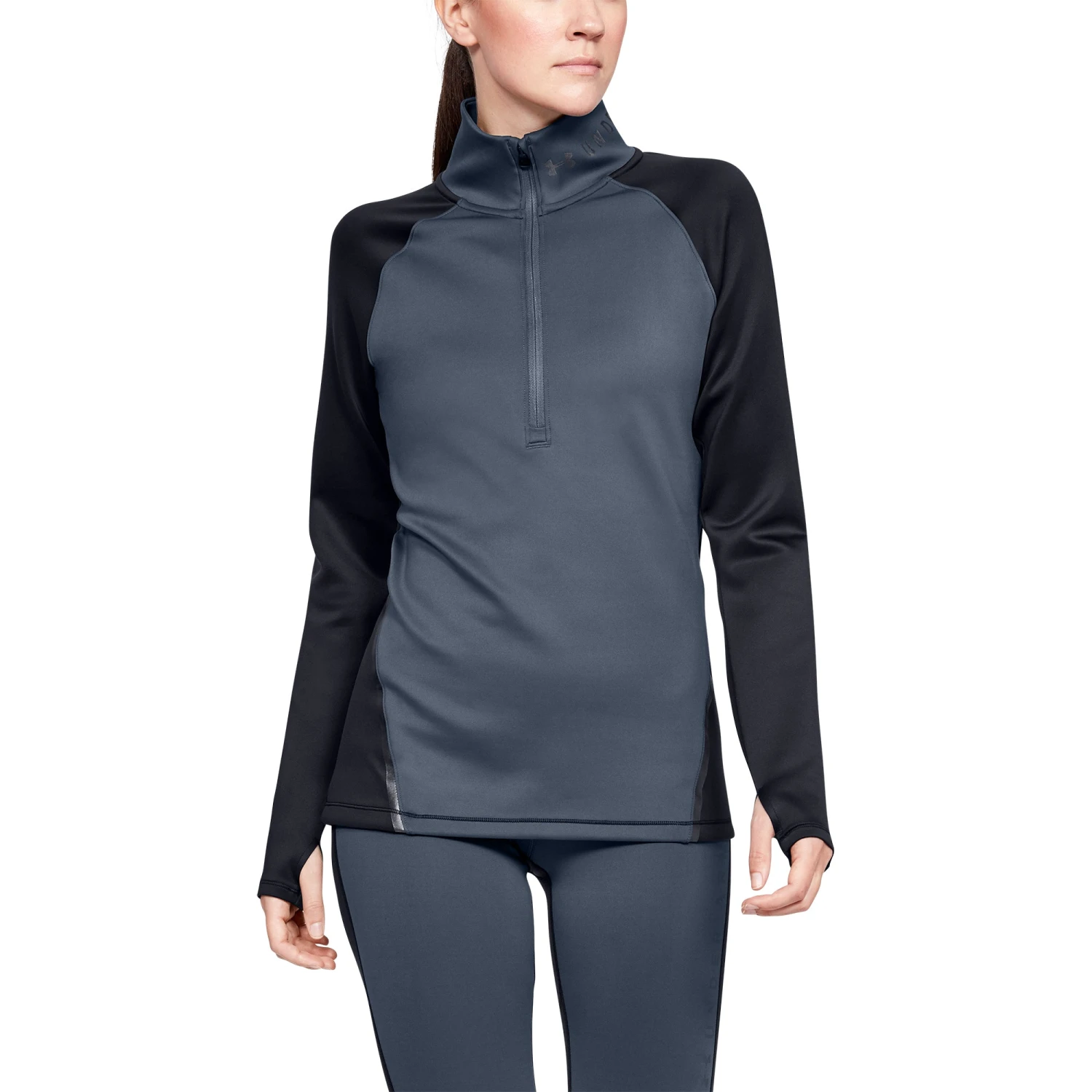 The Under Armour ColdGear Armour Half Zip Womens Shirt is a fan favorite and is back with added features. This shirt is made with an even softer double-sided knit that will eliminate the fuzzy underside while still providing the game changing warmth you are known to love. This ColdGear fabric provides superior mobility and will wick away sweat to keep you dry and comfortable. The dropped, shaped hem gives you enhanced back coverage and the Satin Metallic wordmark provides a shiny look.