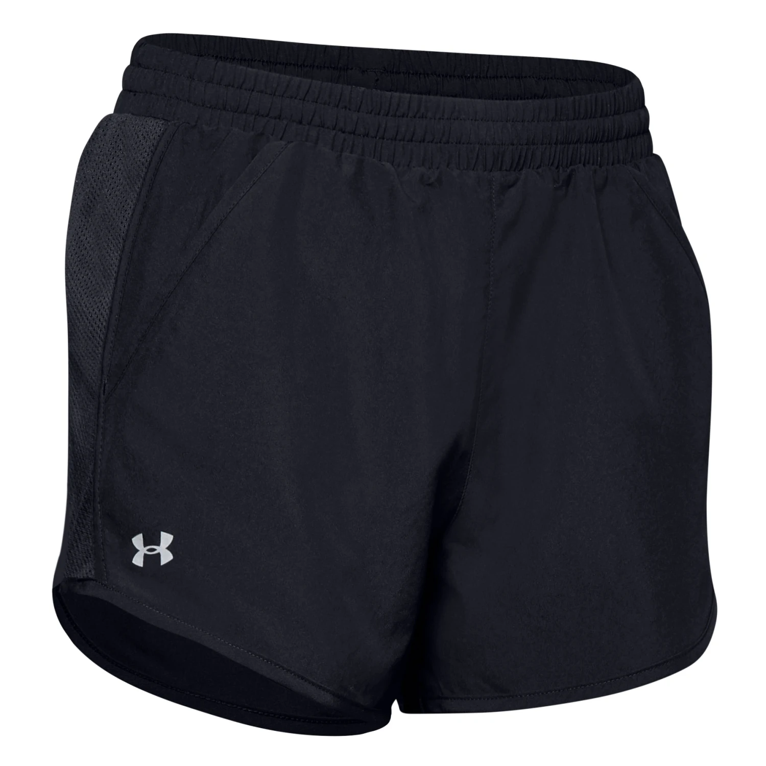 Best the competition with the Under Armour Fly-By Womens Shorts. These shorts are made with a lightweight, durable woven fabric that feels soft for maximum comfort and the moisture wicking properties eliminate sweat so you stay dry while training. There is also mesh paneling that dumps excess heat for superior cooling and the elastic waistband keeps these shorts at your hips for a secure fit.