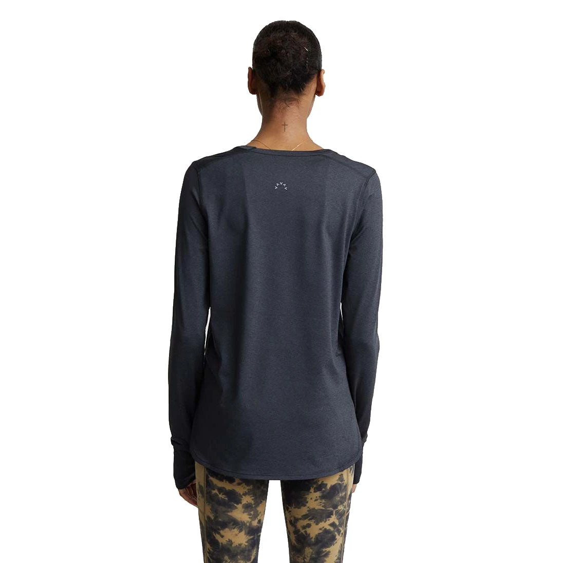 The Varley Kearney Womens Long Sleeve Shirt is an elevated take on the classic crew neck. This long-line top offers great coverage thanks to an elegant, scooped hem with slits. Thumb holes at the cuff and a slim neck binding make this top a must-have addition to your active set.