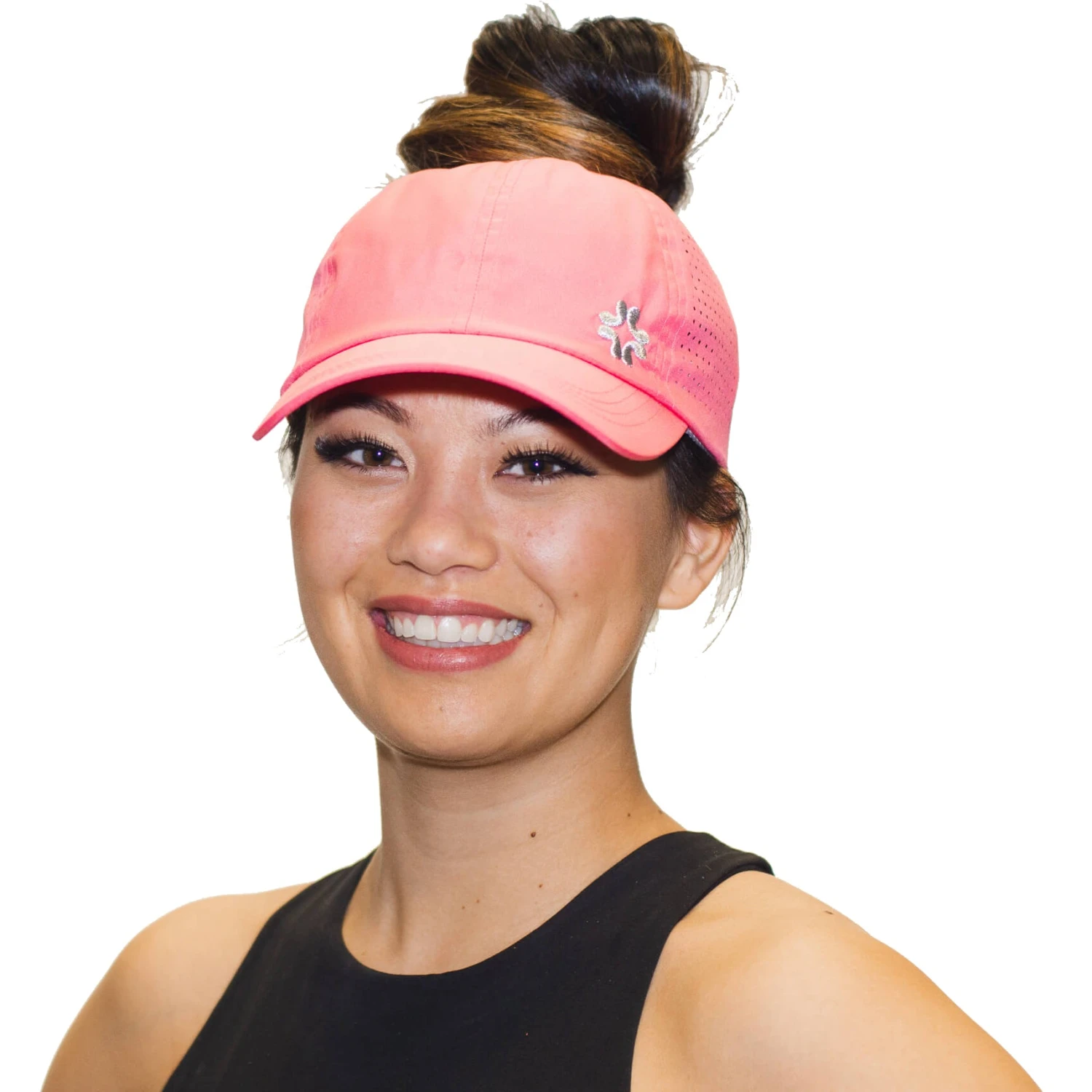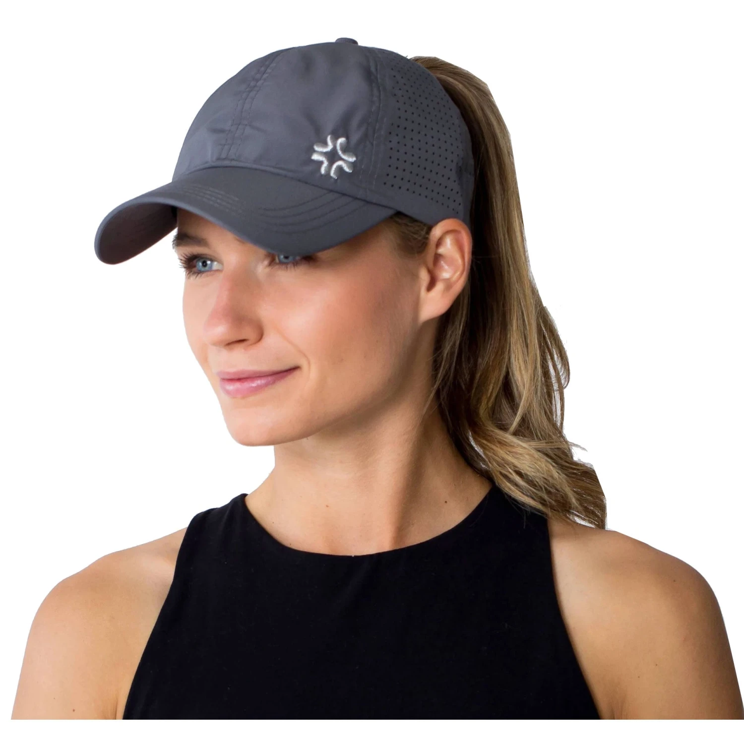 Designed specifically for the woman who loves to wear hats comes the Vimhue Sun Goddess Hat. This hat allows for a variety of different pony heights that can be adjusted for circumference with its no tangle, low profile Velcro X-straps. The Sun Goddess is built with a Breathable CoolingTM that is moisture wicking to pull sweat away to keep you cool and dry and the UPF 50+ rating keeps you protected from the harmful UV rays of the sun.
