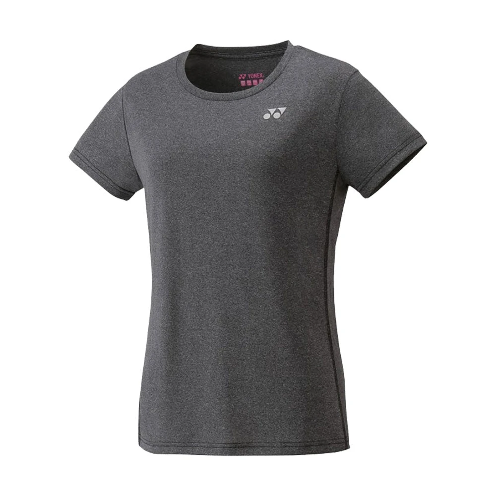 Stay comfortable and looking good out on the court with the Yonex Womens Tennis Shirt. This shirt features a round neck, black side stitching for an added touch of style, and the Yonex logo on the left chest.